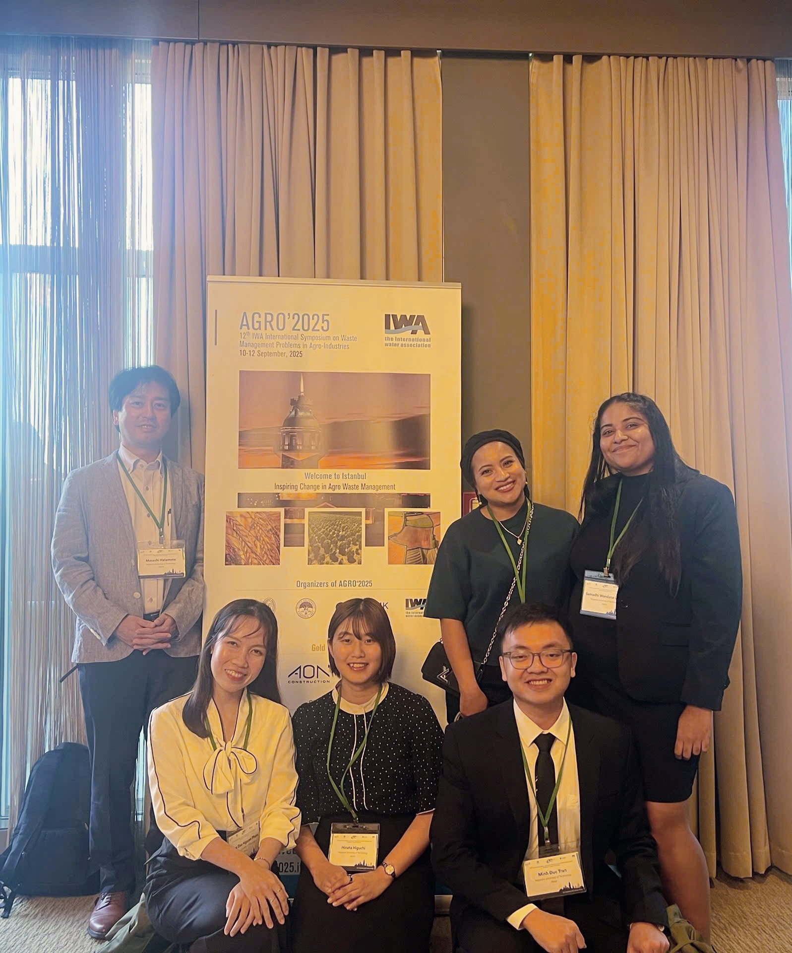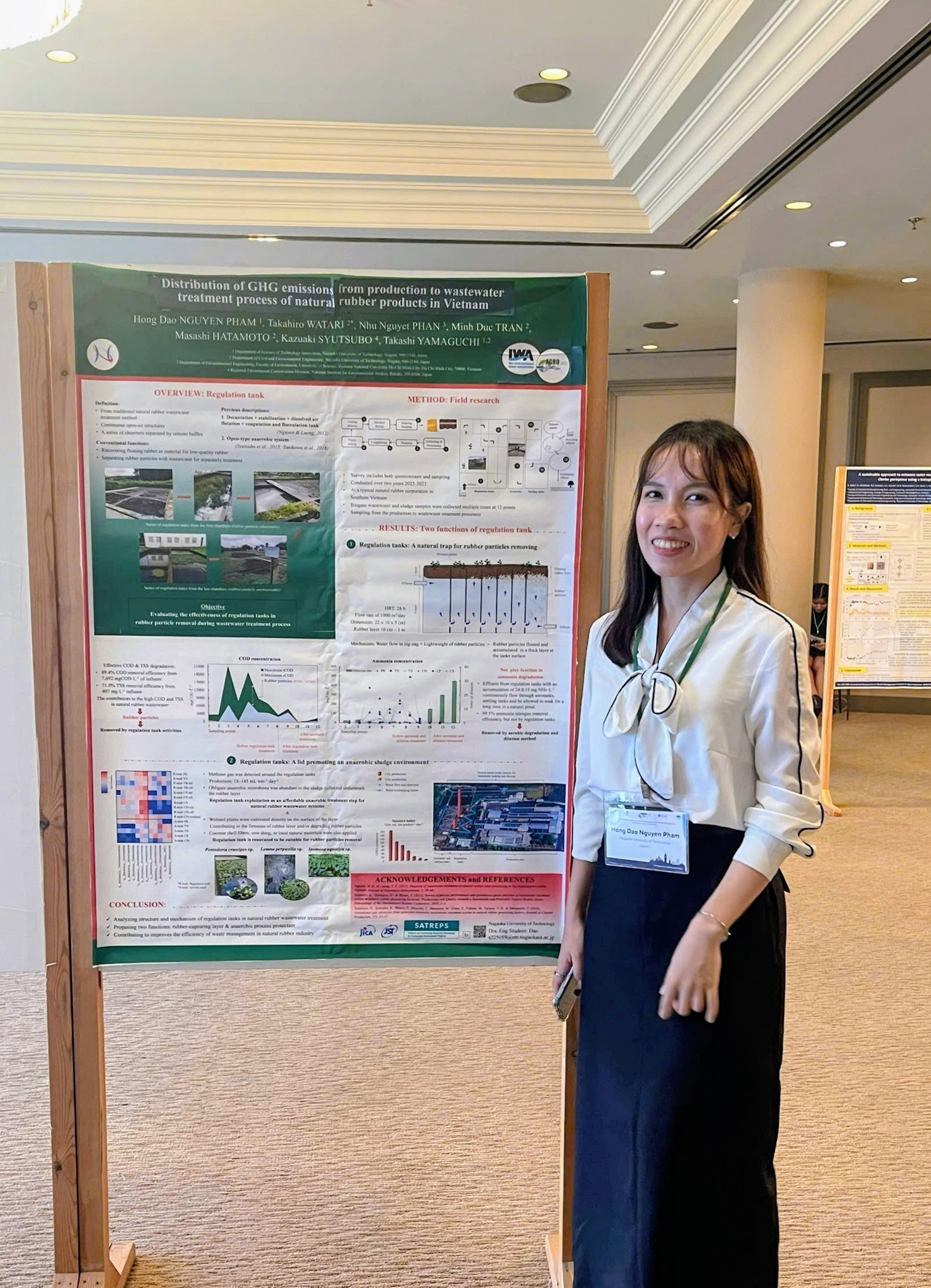 卓越大学院プログラムGD4年のNGUYEN PHAM HONG DAOさん(山口研、Can Tho University. Degree of Bachelor(ベトナム)出身)が、イスタンブールで開催された第12回IWA国際シンポジウムAGRO’2025に参加し、情報収集を行うとともに、 「Distribution of GHG emissions from production to wastewater treatment process of natural rubber products in Vietnam」と題する研究発表を行いました。 本会議はイスタンブール工科大学および京都大学の共催によって開催されました。 発表では、ベトナムの天然ゴム産業における主要製品のライフサイクルを対象に、生産および廃棄物処理過程に伴う温室効果ガス排出要因を明らかにし、削減に向けた持続可能な方策について報告しました。